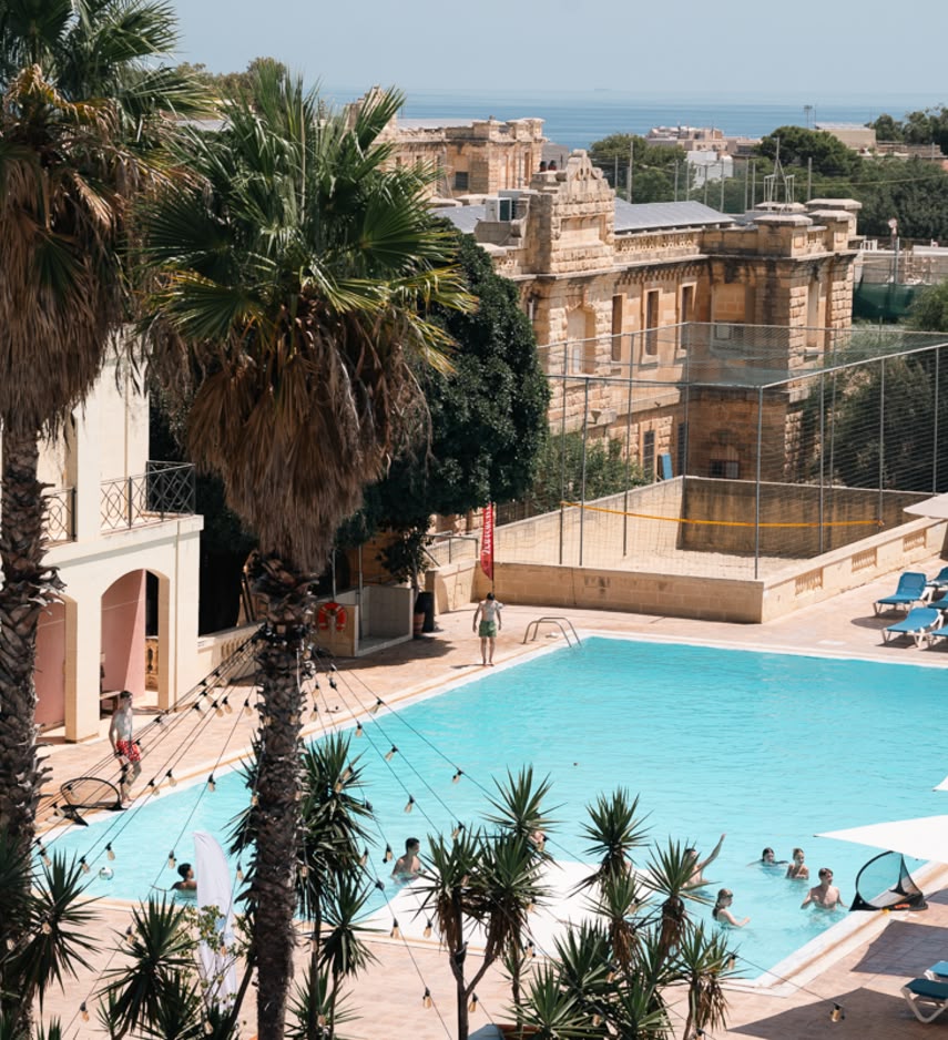 Bei SPRACHCAFFE Malta ist Englisch lernen mehr als nur Unterricht. In unserem exklusiven Club Village - einem einzigartigen Campus mit einladenden und entspannten Lernräumen, einem Schwimmbad, einer Bar und einem Restaurant sowie Sportanlagen - alles an einem Ort.