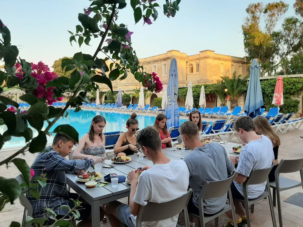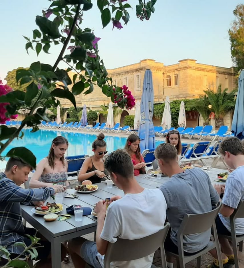 Du wohnst vor Ort mit Vollpension und genießt interaktiven Unterricht, betreute Aktivitäten und spannende Ausflüge auf Malta.